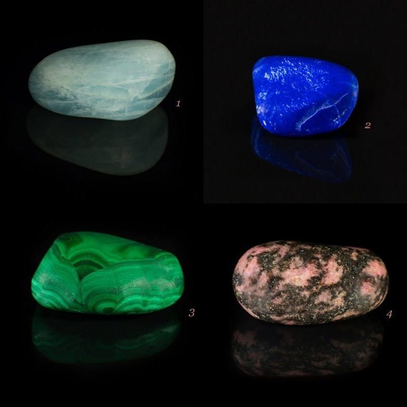 Lapis lazuli will give him a great serenity and comfort, while the rhodonite help keep feet on the ground and to control his emotions.